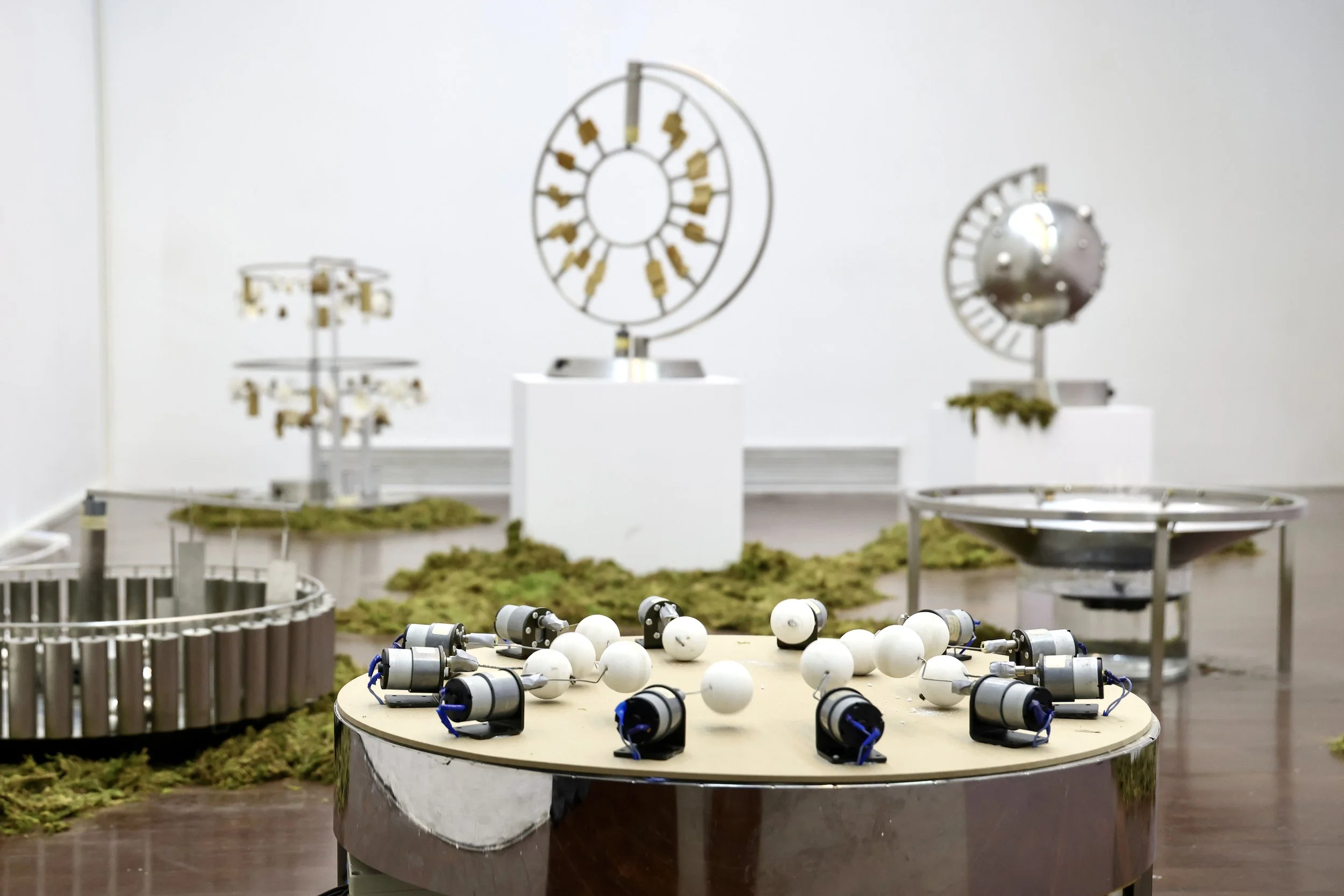 The final work, Symphony (2021) by Xu Ying, brings together a variety of natural and synthetic materials placed into a system of kinetic sound-making devices. Through mechanical activation, the sounds of nature and artificial elements collide and converge, forming a symphonic landscape. As visitors move through the installation, surrounded by clusters of hay, they become physically immersed in the artist’s constructed environment—a landscape where human, nature, and machine merge. The body becomes the receiver of Symphony of Senses’s core message.
